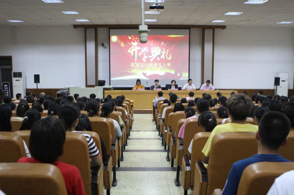 8月26日上午,太阳成集团tyc在c201举行2019级新生开学典礼。公司党委书记贾喜环、经理王重润、副经理刘颖、杨雪美、各系主任副主任出席典礼,公司全体辅导员、2019级全体新生、助理班主任及部分新生家长参加,会议由公司党委副书记王冬坡主持。