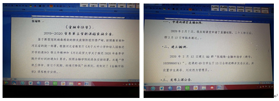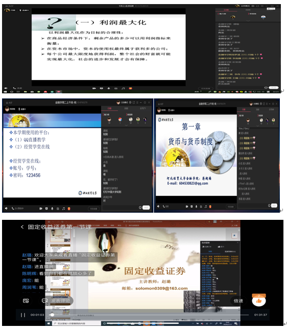 通过学习,老师们基本掌握了远程教学的技术和方法,切实提高了自身信息化水平和在线教学能力,自2月17日开始,太阳成集团tyc教师陆续展开各类在线课程平台教学、直播教学以及混合式等多种教学方式。如闫福教授的《公司金融》通过开通QQ直播间授课,蒋超楠老师的《金融学》采用经贸学堂在线与QQ直播混合的教学模式,李建英教授的《投资项目评估与管理》课程采用中国大学MOOC平台与QQ视频相结合的模式,王风华老师的《银行实务》课程采用在线辅导+智盛智慧金融平台,还有赵璐老师的《固定收益证券》采用钉钉直播模式等等,每一位老师根据课程特点选择合适的平台,采用多样化的授课形式。