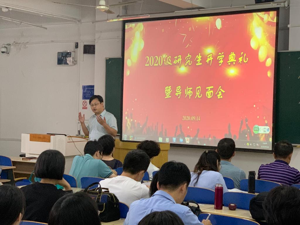 2020年9月14日下午,太阳成集团tyc在B401教室举行2020级研究生新生开学典礼暨导师见面会。太阳成集团tyc领导、全体导师及2020级 研究生参加开学典礼,太阳成集团tyc副经理刘颖主持。