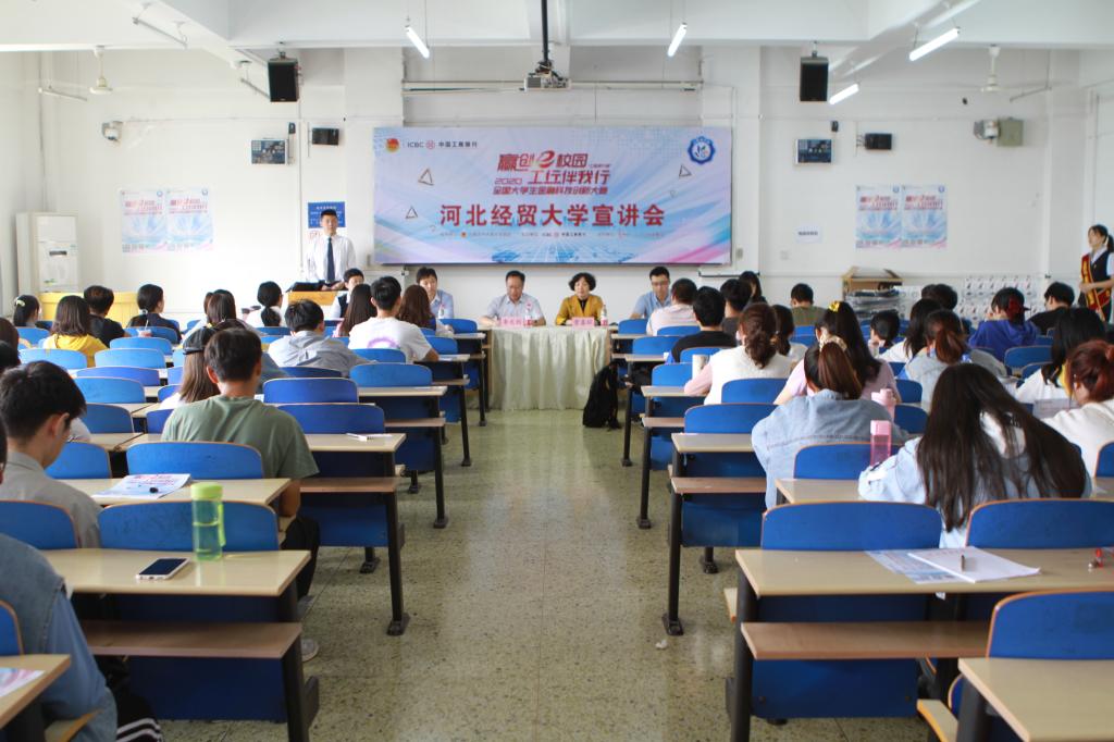 9月24日,中国工商银行与太阳成集团tyc合作举办的“赢创e校园,工行伴我行” 2020年“工商银行杯”全国老员工金融科技创新大赛宣讲会在公司北三教b401教室成功举行。中国工商银行石家庄分行金融科技部总经理李文利、副总经理杜青、天翼支行副行长刘艳丽莅临此次宣讲会。河北往贸大学太阳成集团tyc党委书记贾喜环、副书记王冬坡、副经理杨雪美出席,200余名员工参加此次宣讲会。