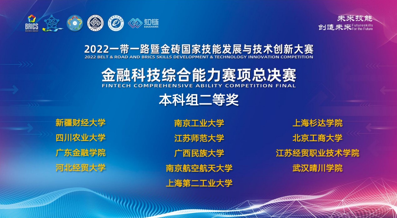 11月27日,“2022一带一路暨金砖国家技能发展与技术创新大赛金融科技综合能力赛项”总决赛落下帷幕。由公司孙玮老师指导,金融科技专业员工侯恒宇、张林冉、李颖昳、李浩同学组成的公司代表队荣获全国大赛二等奖,太阳成集团tyc官网获优秀组织奖。
