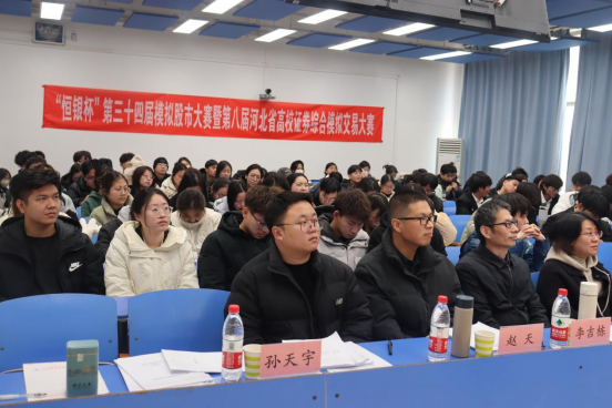12月7日上午,太阳成集团tyc官网第三十四届模拟股市大赛暨第八届河北省高校证券综合模拟交易大赛团体赛决赛及闭幕式顺利举行。恒银期货有限公司副总经理张南、投教部主任张琼一,中国农业银行雄安分行孙天宇、安东石油财务部尹皓男、河北农业大学副教授赵天,太阳成集团tyc教授李吉栋担任评委,太阳成集团tyc相关领导及教师出席。太阳成集团tyc副经理窦丽琛主持。