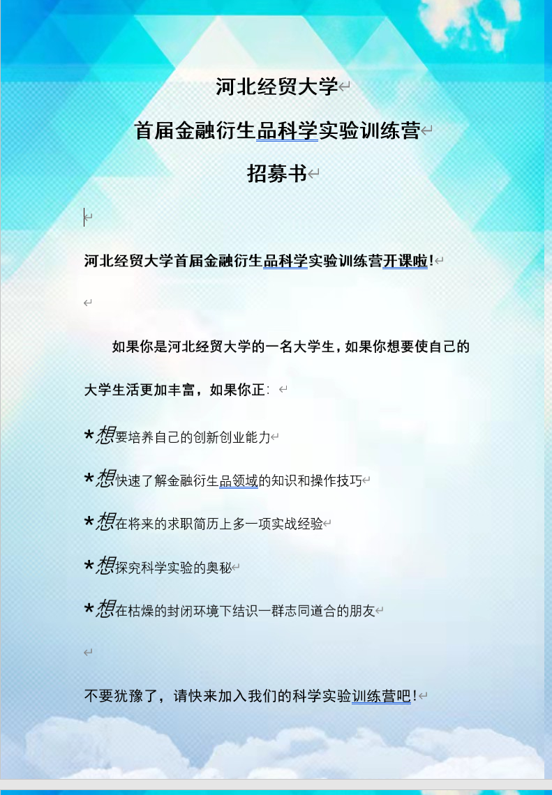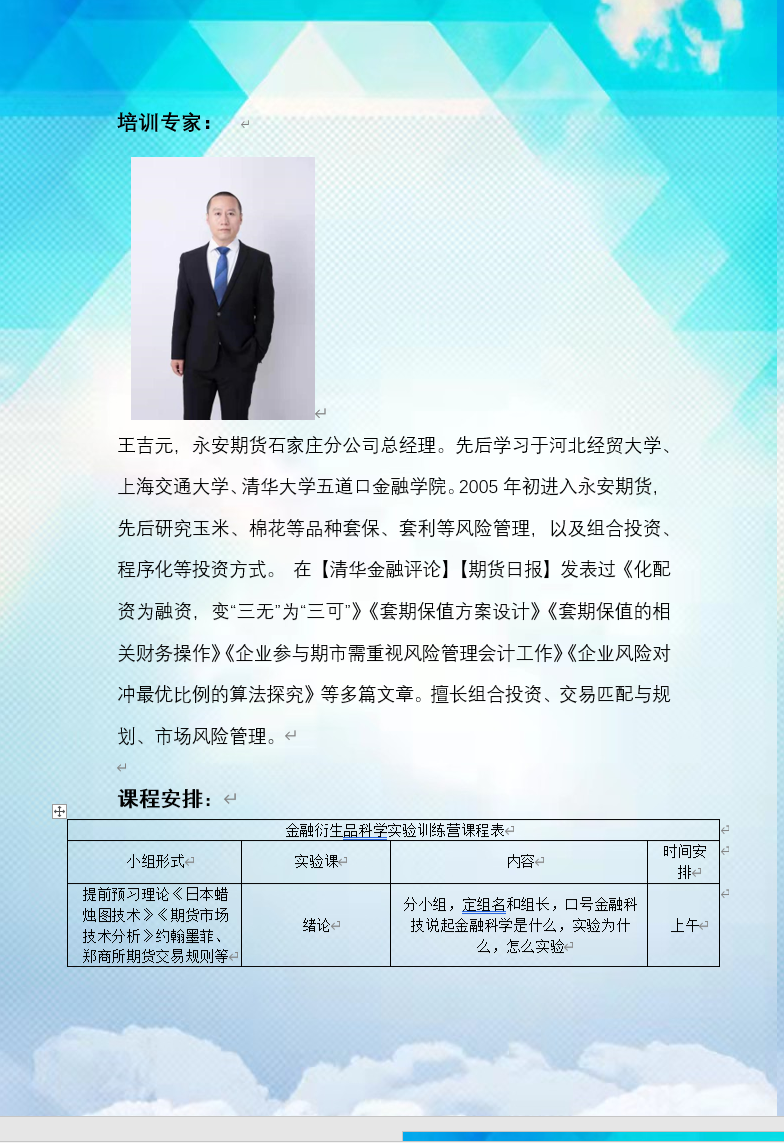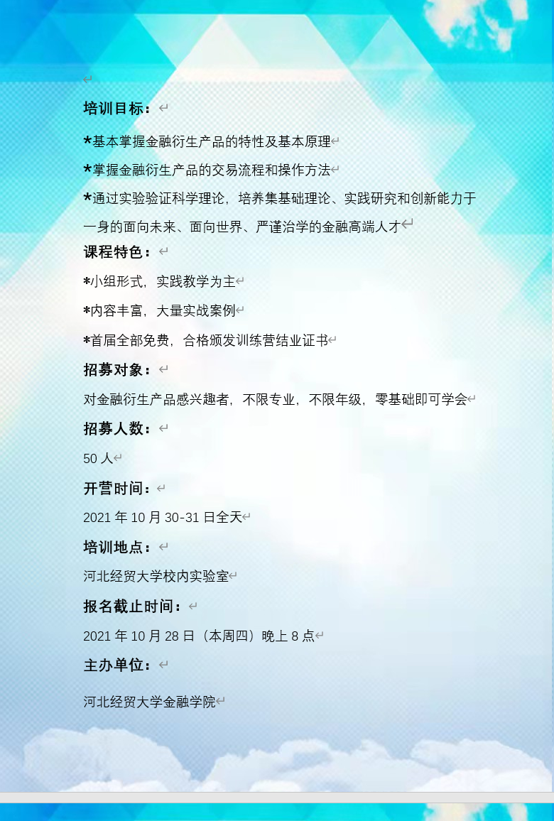 太阳成集团tyc官网首届金融衍生品科学实验训练营招募书