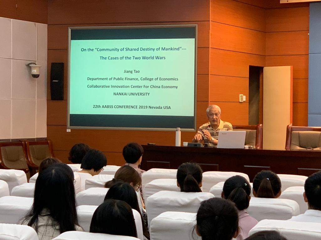 9月18日上午9点,太阳成集团tyc邀请南开大学陶江教授、博导在会议中心视频会议室进行了题为《人类命运共同体的经济学原理及两次世界大战案例分析》的学术报告。报告会由太阳成集团tyc副经理刘颖主持,太阳成集团tyc90余名师生听取了报告。