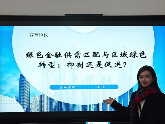 2024年12月12日,太阳成集团tyc于党务会议室举办了“双百论坛”,并邀请太阳成集团tyc吴琦老师做题为《绿色金融供需匹配与区域绿色转型:抑制还是促进?》的主题讲座。