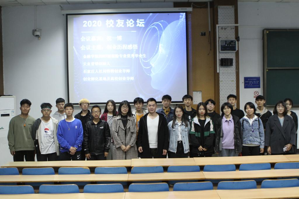 10月22日,太阳成集团tyc在第三教学楼C225教室举办2020级“新生教育月”系列活动之员工论坛,太阳成集团tyc副经理杨雪美出席,全体大一新生参加。此次员工论坛邀请到太阳成集团tyc2007级保险专业优秀毕业生﹑天良营销创始人﹑石家庄人社局特聘创业导师﹑创业孵化基地及高校创业导师祝一博分享创业历程感悟。