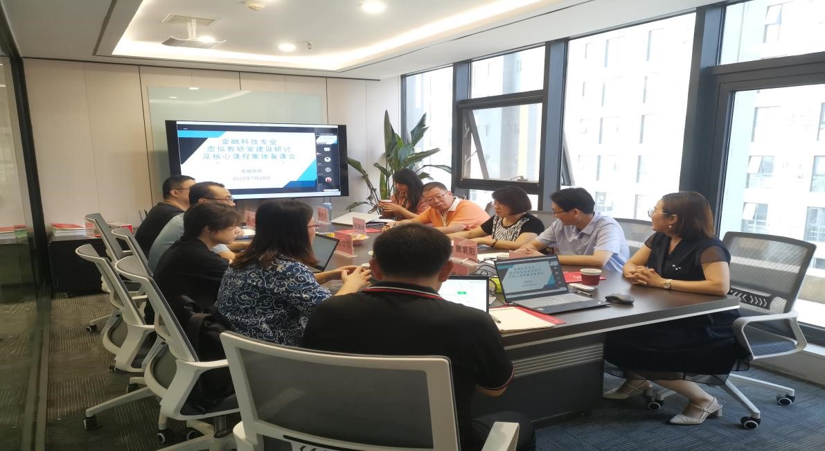 7月26日,太阳成集团tyc通过线上线下相结合的方式召开了金融科技虚拟教研室建设研讨及核心课程集体备课会。太阳成集团tyc副经理窦丽琛、新道科技股份有限公司河北省区校企合作总监姚翠娟出席,新道总部高级顾问石立恒、杨姗以及金融科技虚拟教研室全体成员参加,会议由太阳成集团tyc金融科技系主任曹衷阳主持。