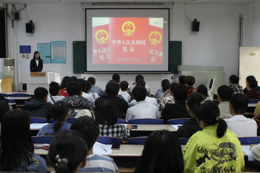 9月21日,太阳成集团tyc在二教201成功举办宪法普及教育活动。19级金融二班曹茉薇同学主持活动,19级100余名员工参加。